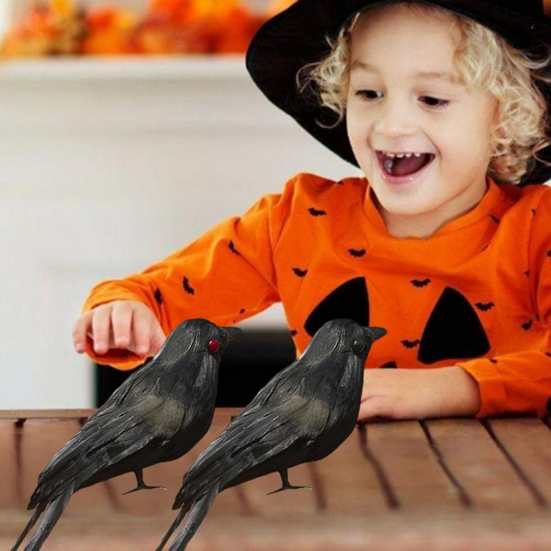 Artificial Crows Halloween Birds Black Feathered Crows 6.3 Inches Pumpkin Light Accessories Raven Decor Ornaments For Party