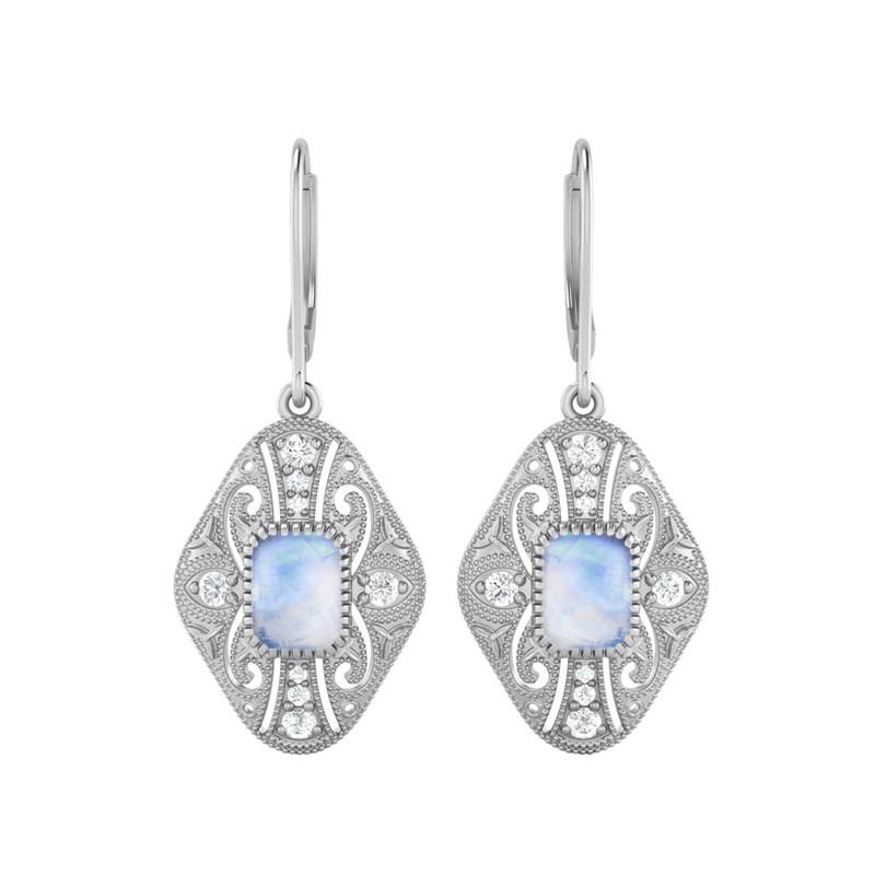 Kolczyki filigranowe ze srebra próby 925 z kamieniami księżycowymi o szlifie oktagonalnym 4,28 Ct. Design inspirowany stylem vintage z detalami milgrain, idealny na elegancki prezent.