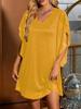 Elegancka sukienka z dekoltem w serek i rękawem 5/8, hot-stampingowana, na wiosenne/letnie przyjęcia
