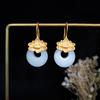 Naturalne An Jade Kolczyki Wiszące Okrągłe Vintage Lotosowe Kolczyki Dla Kobiet Klasyczny Styl Urocze Nowość Biżuteria Prezent