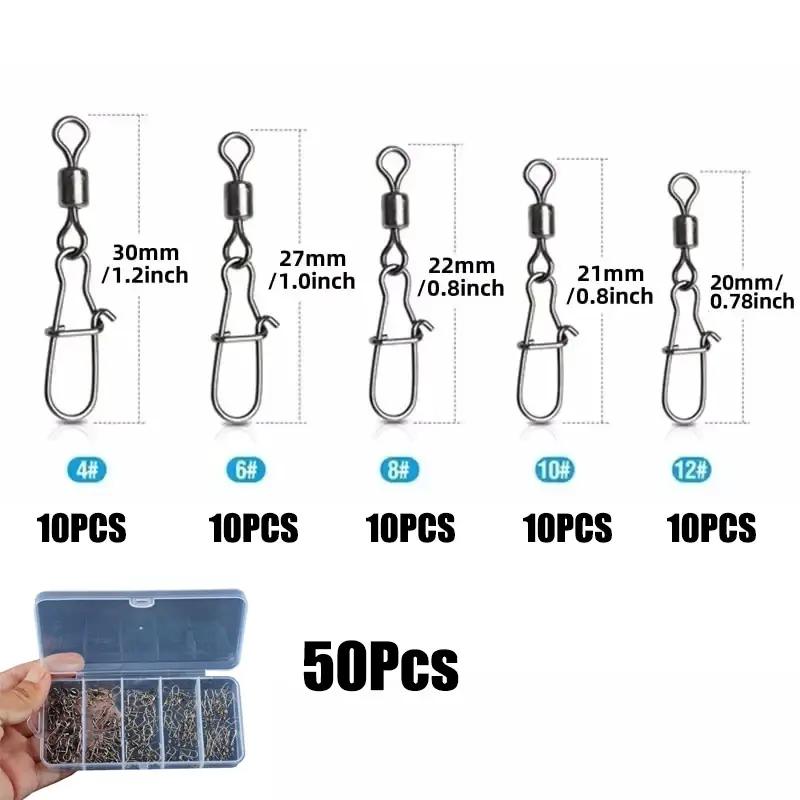 • 50 SZT./Pudełko :Zyskaj więcej za swoje pieniądze dzięki temu pudełku zawierającemu 50 stalowych łączników do żyłki wędkarskiej.