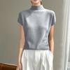 Modna dzianinowa koszulka z krótkim rękawem i półgolfem dla kobiet