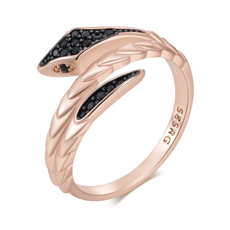 Punkowy Czarny Pierścionek Wąż z Naturalnym Cyrkoniem Dla Kobiet Drobne Różowe Złoto i Czarne Platerowanie Vintage Codzienna Biżuteria Zwierzęca