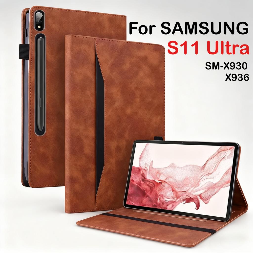 Skórzane etui na tablet do Samsung Galaxy Tab S11 Ultra SM-X930 X936 S10 Lite FE Plus 13.1 2025 14.6" z miejscem na karty i podstawką Funda