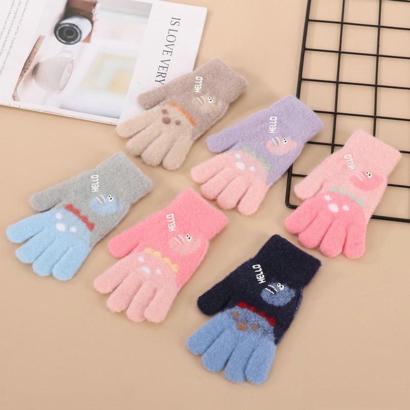 Rękawiczki dla niemowląt Zimowe dziecięce grube wełniane rękawiczki Rękawiczki z dzianiny z kreskówkowym krokodylem