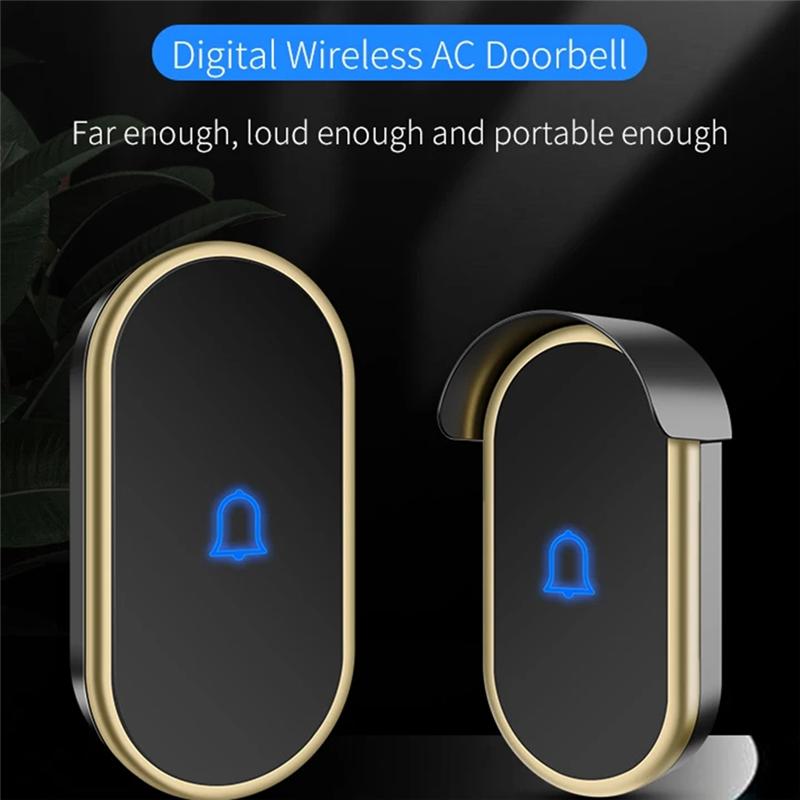 B03B-Intelligent Wireless Doorbell Outdoor Without Battery Button Call Chime Wireless Doorbell White+Silver US Plug