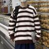 Striped sweater men's autumn and winter lazy Japanese loose coat retro trendy brand winter thickened long-sleeved knitted sweater