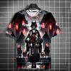 Modny Uniwersalny Męski T-shirt z Nadrukiem 3D Japoński Samuraj Anime Osobowość Okrągły Dekolt Krótki Rękaw Modne T-shirty