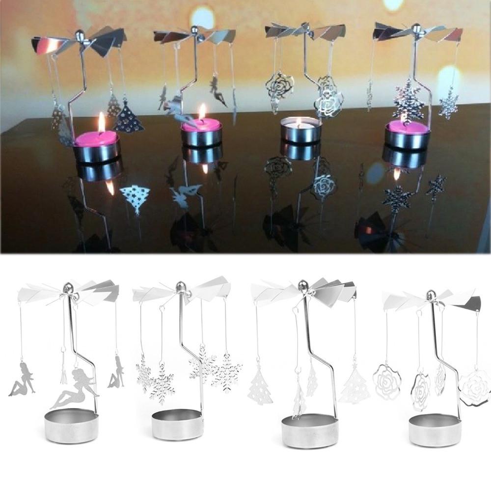 Hot Spinning Rotary Metal Carousel Tea Light Świecznik Stojak Light Xmas Gift