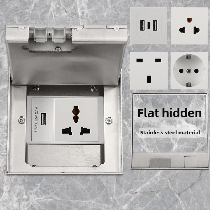 Embedded Invisible Floor Socket Stainless Steel Marble Style Universal Three Hole Flat USB Charging Power Socket