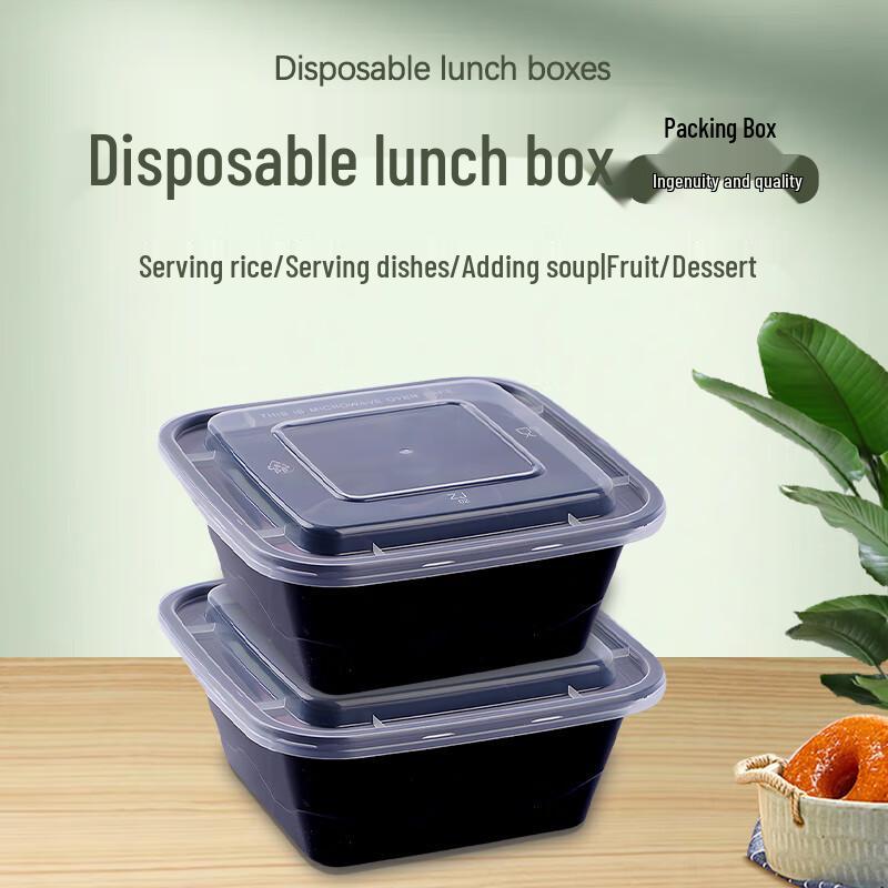Disposable 1000ml Square Black Takeaway Meal Boxes