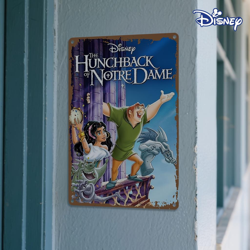1pc Disney The Hunchback of Vintage Metal Tin Sign Wall Art - 20.32x30.48 cm Iron Decorative Plaque with Quasimodo & Esmeralda,