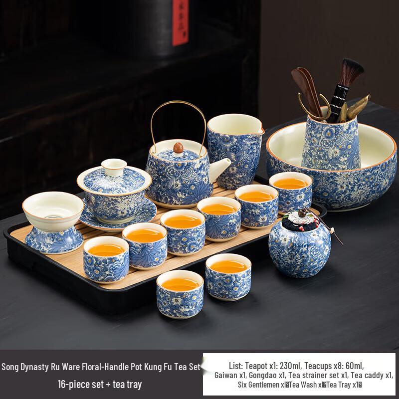 Ru Yao Ceramic Tea Set with Floral Beam Pot and Gaiwan