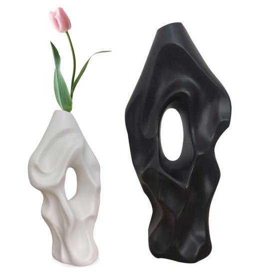 Wysokiej jakości konstrukcja z tworzywa sztucznego: Wykonany z wysokiej jakości tworzywa sztucznego ten wazon oferuje wyjątkową trwałość i odporność na pęknięcia.. Idealny dla gospodarstw domowych poszukujących długotrwałego elementu dekoracyjnego, który wytrzymuje codzienne użytkowanie bez kompromisów w zakresie stylu lub jakości.
