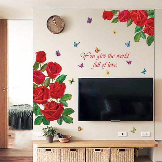 Naklejka Ścienna Kwiatowa Zdejmowana Naklejka PCV Peel And Stick Kolorowa Róża/Powój Kwiatowe Murale Ścienne Dekoracja do Sypialni Salonu Pokoju Dziecięcego