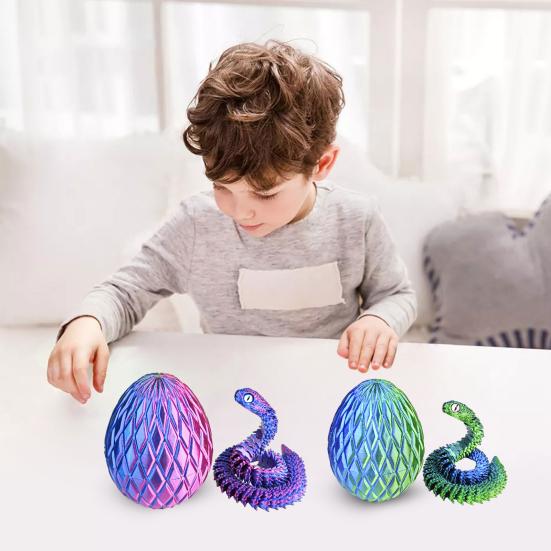 Ta ozdoba w kształcie jaja węża ma żywe, zmienne kolory, które przyciągają uwagę i dodają wizualnego uroku każdemu pomieszczeniu.. Starannie wykonana przy użyciu zaawansowanej technologii druku 3D, delikatna rzeźba węża znajduje się wewnątrz jajka drukowanego w 3D, które otwiera się, odsłaniając przegubowego węża w środku..