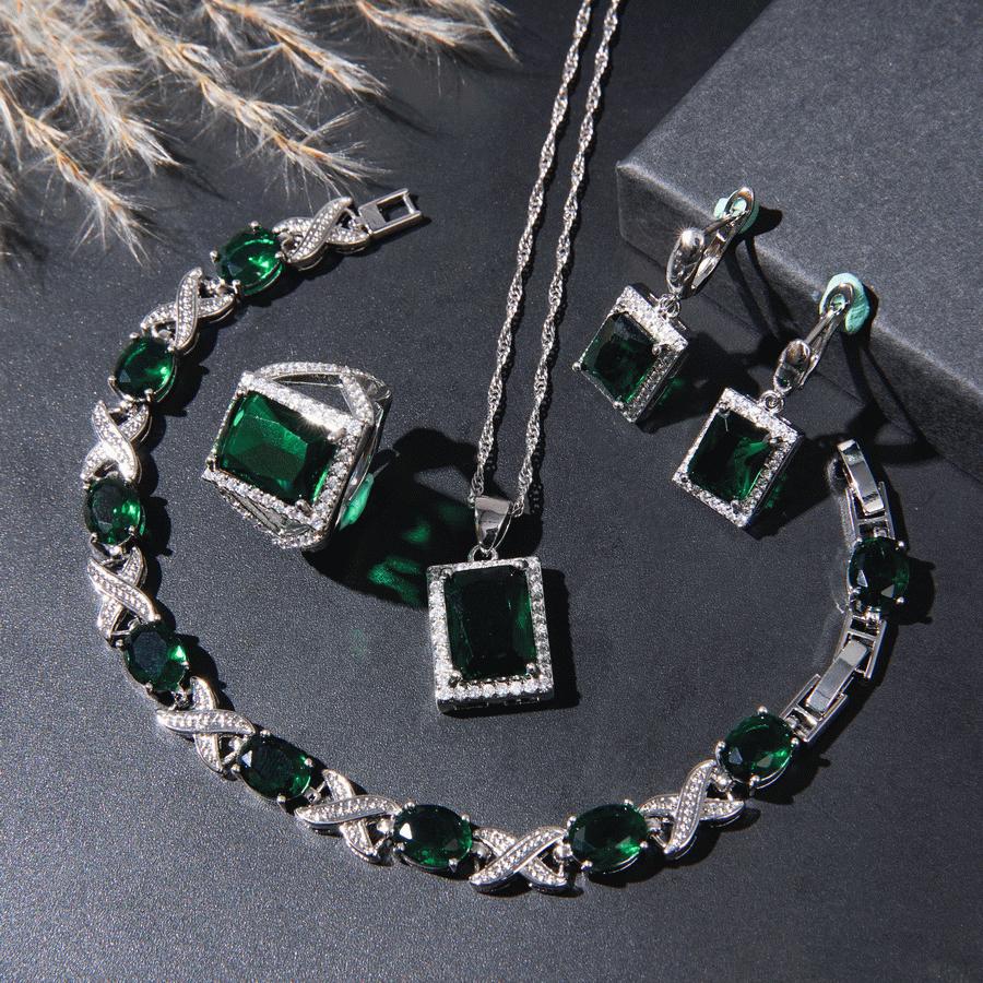 Klasyczny damski zestaw biżuterii z kwadratową cyrkonią sześcienną, z pierścionkiem, kolczykami, zawieszką, zestaw naszyjnika, ślubny dla panny młodej i druhen, prezent ślubny