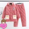 Women's Winter Three-Layer Fleece Pajamas, Coral Velvet Flannel Winter Warm Pajamas for Outdoor Wear Home Clothes