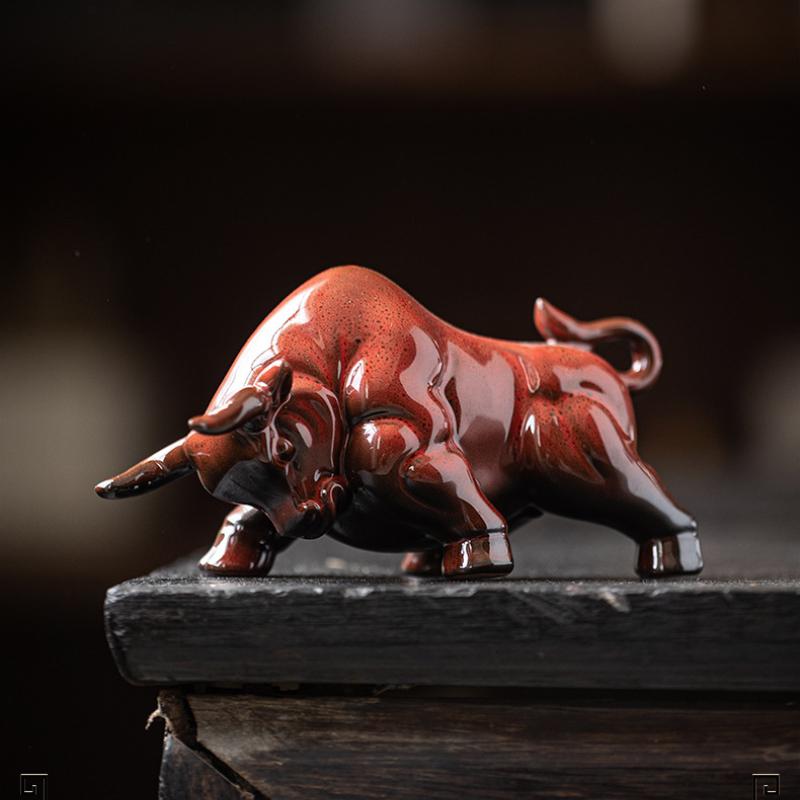 Ceramiczna Statuetka Byka Walki Byków Rzeźba Bydła Wall Street Dekoracja Feng Shui do Biura na Biurko Półka na Książki Ozdoby Figurki Zwierząt