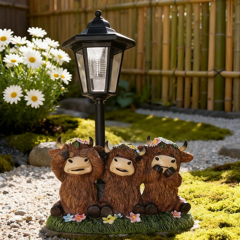 Solar Highland Cow Yard Light Resin Hexagonal Lamp Decorative Ornament Garden Courtyard Lawn Decorative Atmosphere Light