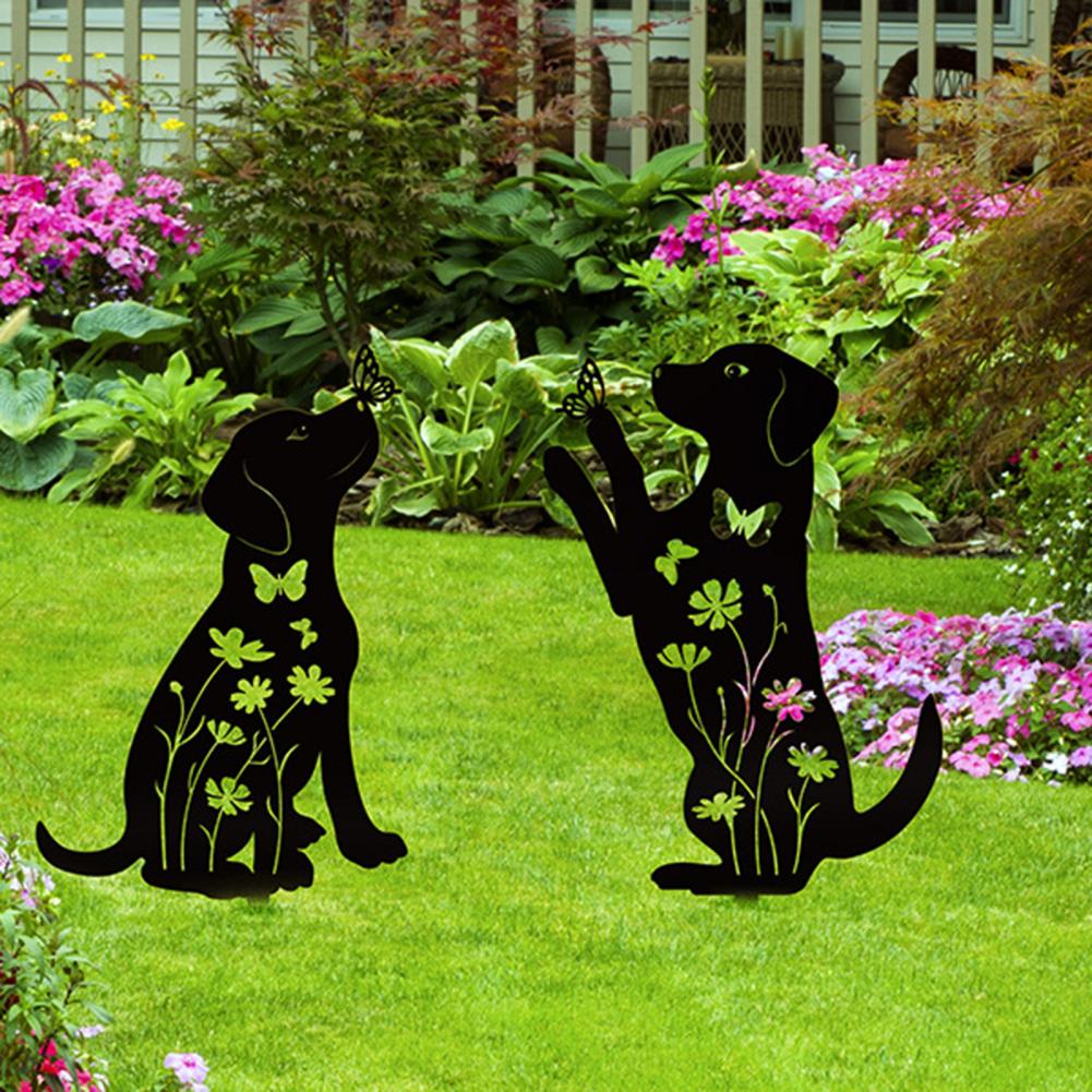 Dekoracyjny Palik Ogrodowy Palik Ogrodowy Kot 2 szt. Paliki Ogrodowe Puste Wzory Kot Pies Królik Metalowa Sylwetka Psa Sztuka Podwórkowa