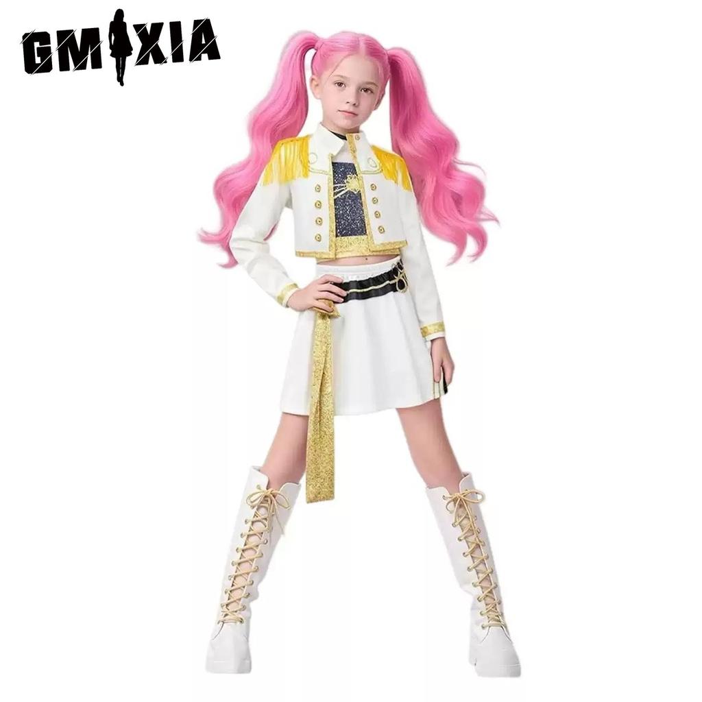 GMXIA Strój Cosplay Grupy Dziewcząt z Długim Rękawem jako Rumi, K-POP Grupa Dziewcząt Zoe Mira, i Damski Kostium do Występów Cosplay Kobiety Damskie Garnitury Spódnicowe