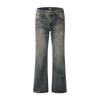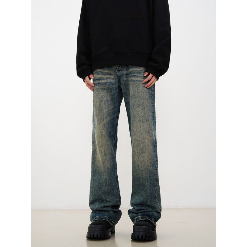 Kisko American High Street Washed Vintage Yellow Mud Flared Jeans for Men, Trendy Straight-Leg Slimming Cleanfit Long Pants