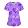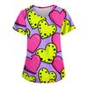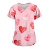 Damskie modne koszulki z krótkim rękawem i dekoltem w serek z nadrukiem i kieszeniami, do pracy