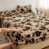 Coral Plush Dust Cover Leopard PrintThick Rabbit Plush Bed Fitted Sheet for Autumn and Winter Warmth Mattress Protective Cover