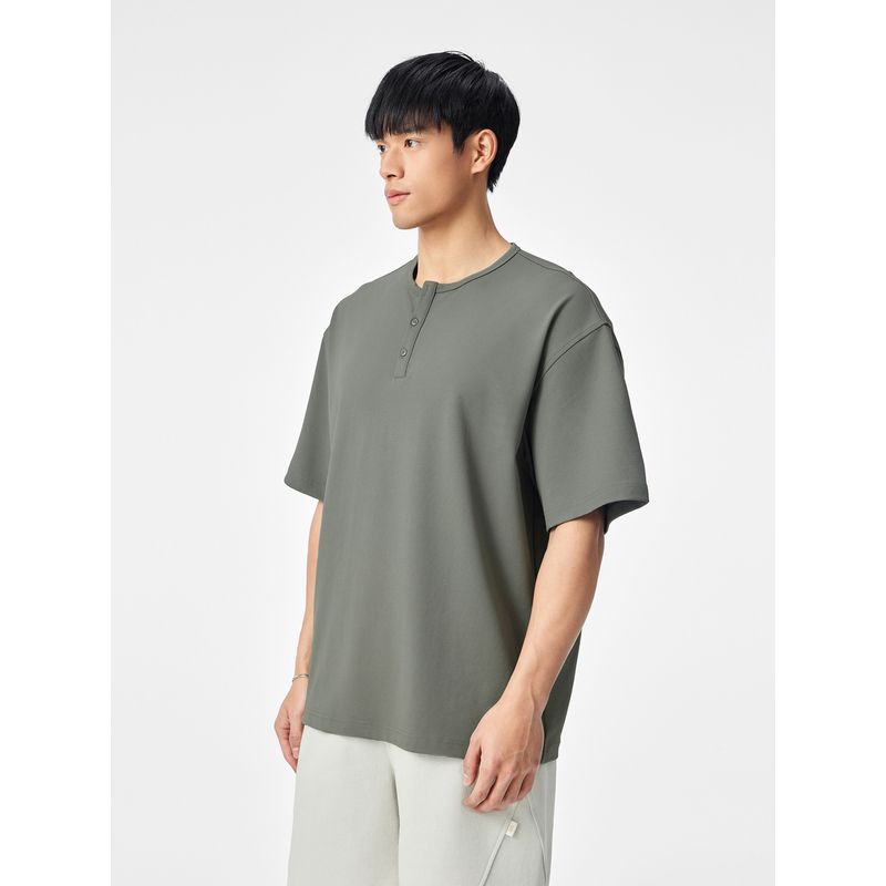Bodydream Henry Collar Short-Sleeved T-Shirt Loose Casual Pique Texture Men's Top Half-Sleeved T-Shirt