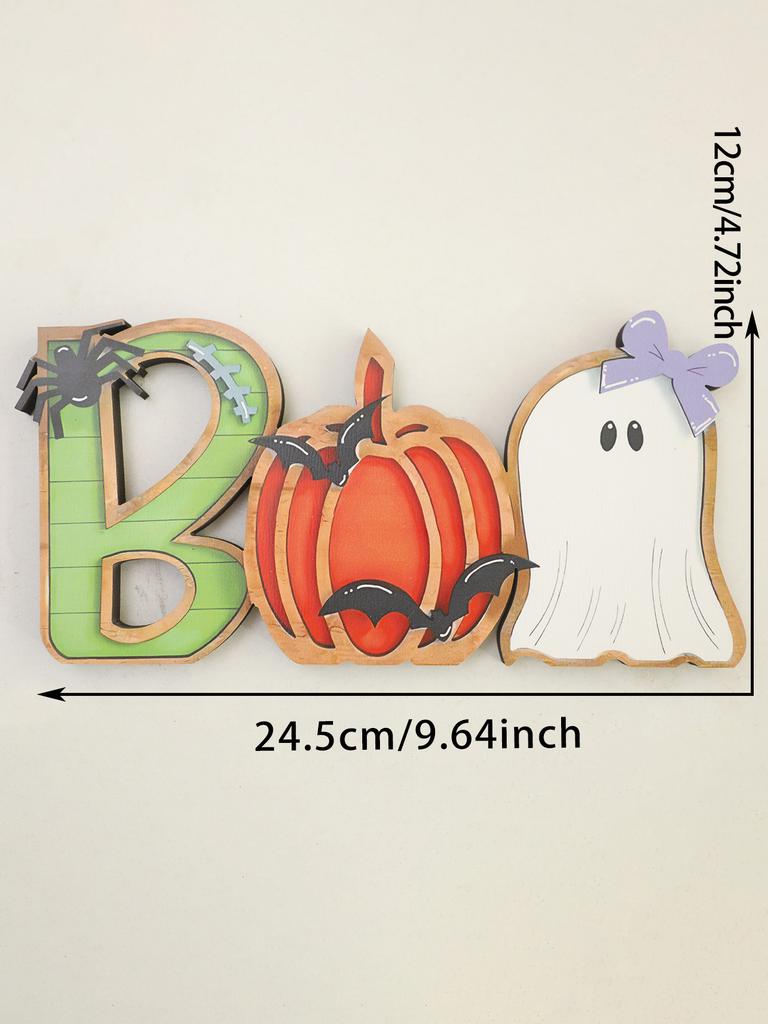 1pc Halloween Wooden"BOO"Table Decor, Ghost,Pumpkin Bat & Letter B with Spider, Colorful Ornaments for Festive Home Desktop Gift