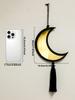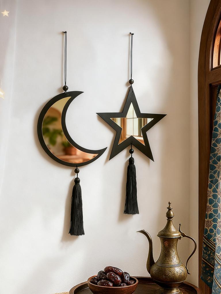 1pc Ramadan Moon Star Golden Mirror Wall Decor,Black Tassel Hanging Ornaments,Islamic Festive Home Decor for Ramadan & Eid Gifts