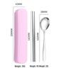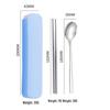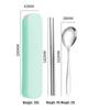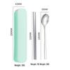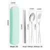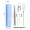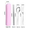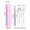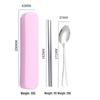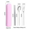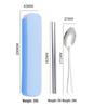 Spersonalizowany Zestaw Sztućców Ze Stali Nierdzewnej na Zewnątrz: Łyżka, Widelec i Pałeczki w Przenośnym Pudełku Prezentowym.