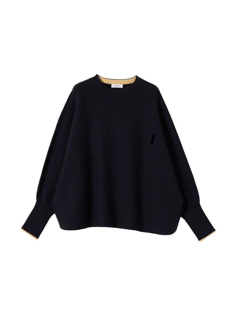 The thin, contrasting color lines at the cuffs subtly tighten the garment, while the curved hemline adds a touch of lightness.