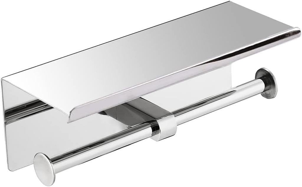 Antidrop Toilet Roll Holder, Double Roll Toilet Paper Holder with Phone Shelf, 8K Mirror SUS304 Stainless Steel, Wall Mounted