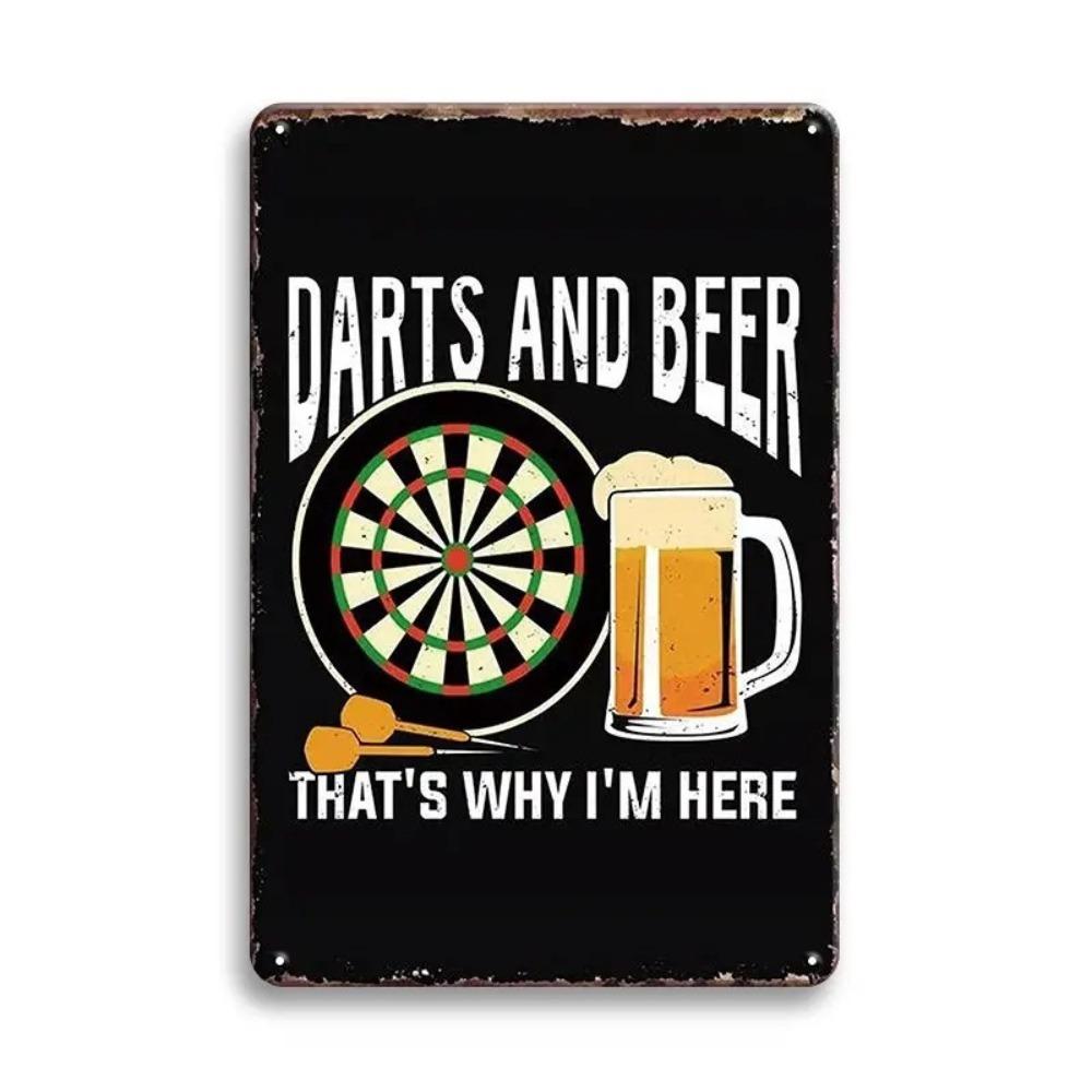 1 szt. Vintage Metalowy Znak Blaszany Retro Sztuka Ścienna do Baru, Pokoju Gier, Pubu - Humorystyczna Dekoracja Domu dla Graczy w Darta i Miłośników Piwa