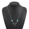 Vintage ethnic style geometric turquoise necklace, fashionable cactus flower cow head collarbone chain