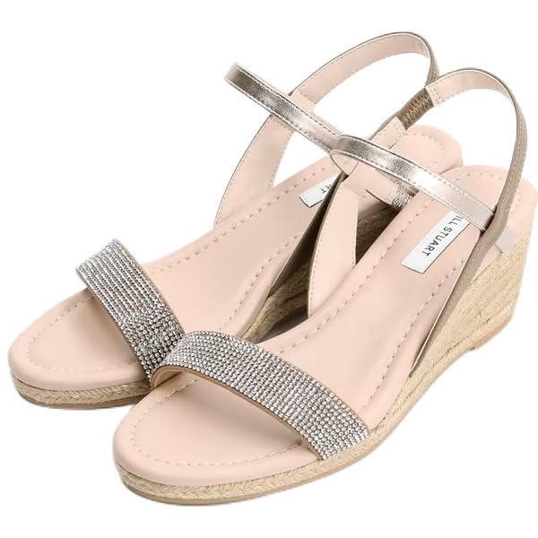 JILL STUART SHOE Women's Rhinestone Jute Wedge Sandals 6616, Black/Black, Size 22.5cm, E