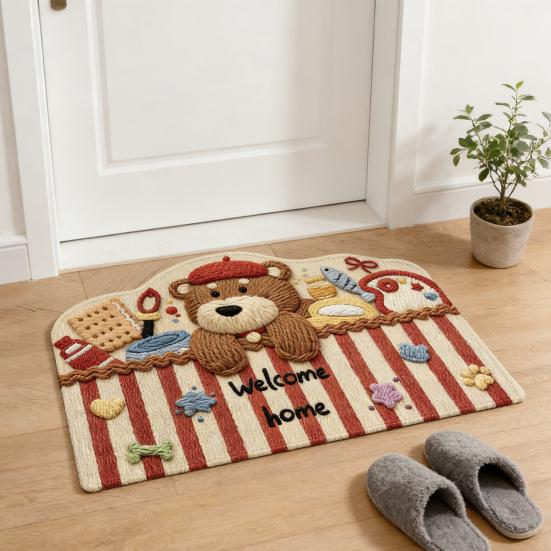 Cartoon Animal Welcome Doormat Cute Cat Dog Bear Entrance Rug Non-Slip Absorbent Floor Mat for Bathroom Bedroom Kitchen Doorway
