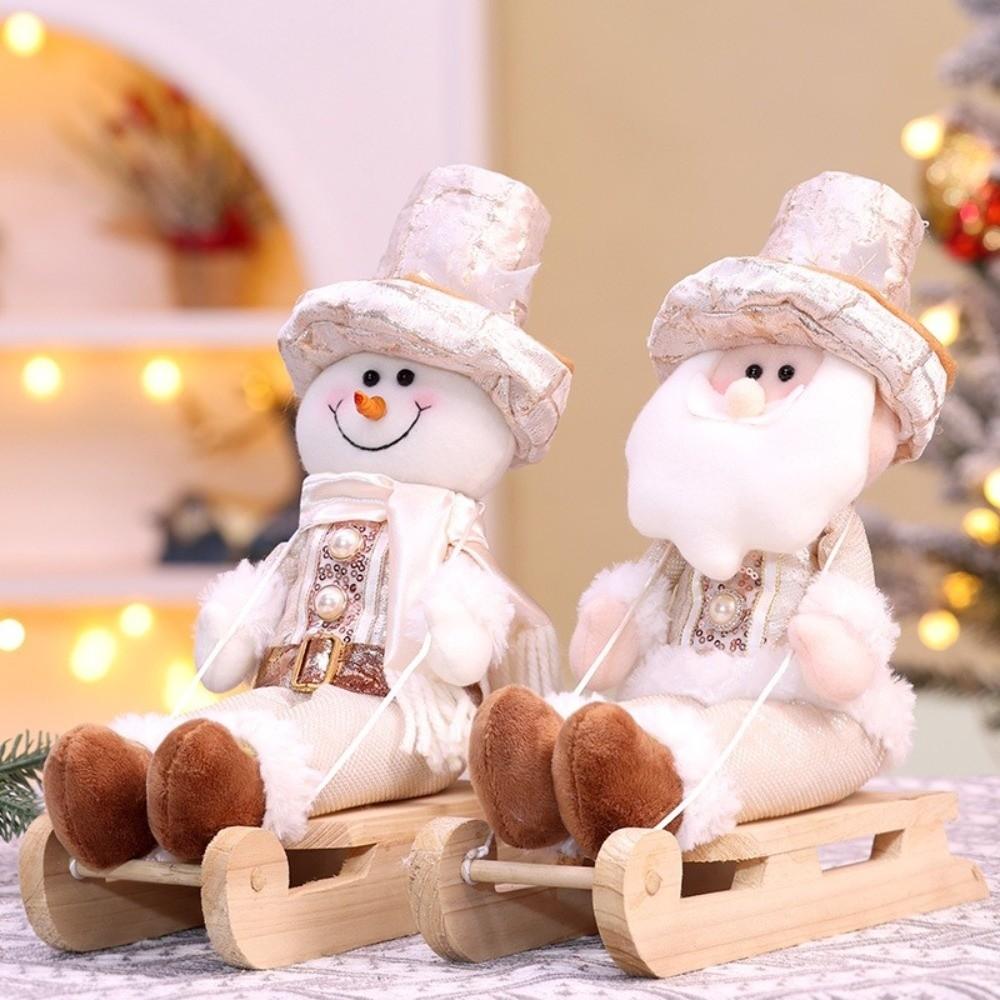 Champagne Sled Sitting Doll Santa Claus Cartoon Christmas Decorations Soft Exquisite Snowman Desktop Doll Office