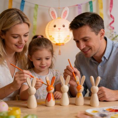 Niedokończone Drewniane Króliki Rękodzieło DIY Mini Drewniana Figurka Królika Wielkanocne Puste Drewniane Lalki Króliki do Malowania Rękodzieła Dekoracja Domu