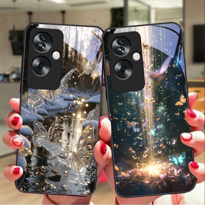 Gradient Butterfly For Oppo A79 5G 58 78 74 60 4G Reno 11F Realme GT 6 11 Note 50 10 C55 X2 Tempered Glass Black Phone Case