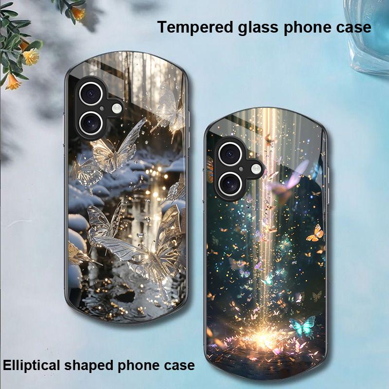 Gradientowy motyl na Apple iPhone 16 11 13 15 14 Pro Max 12 Mini 7 8 Plus XR X XS Etui na telefon z hartowanego szkła o eliptycznym kształcie