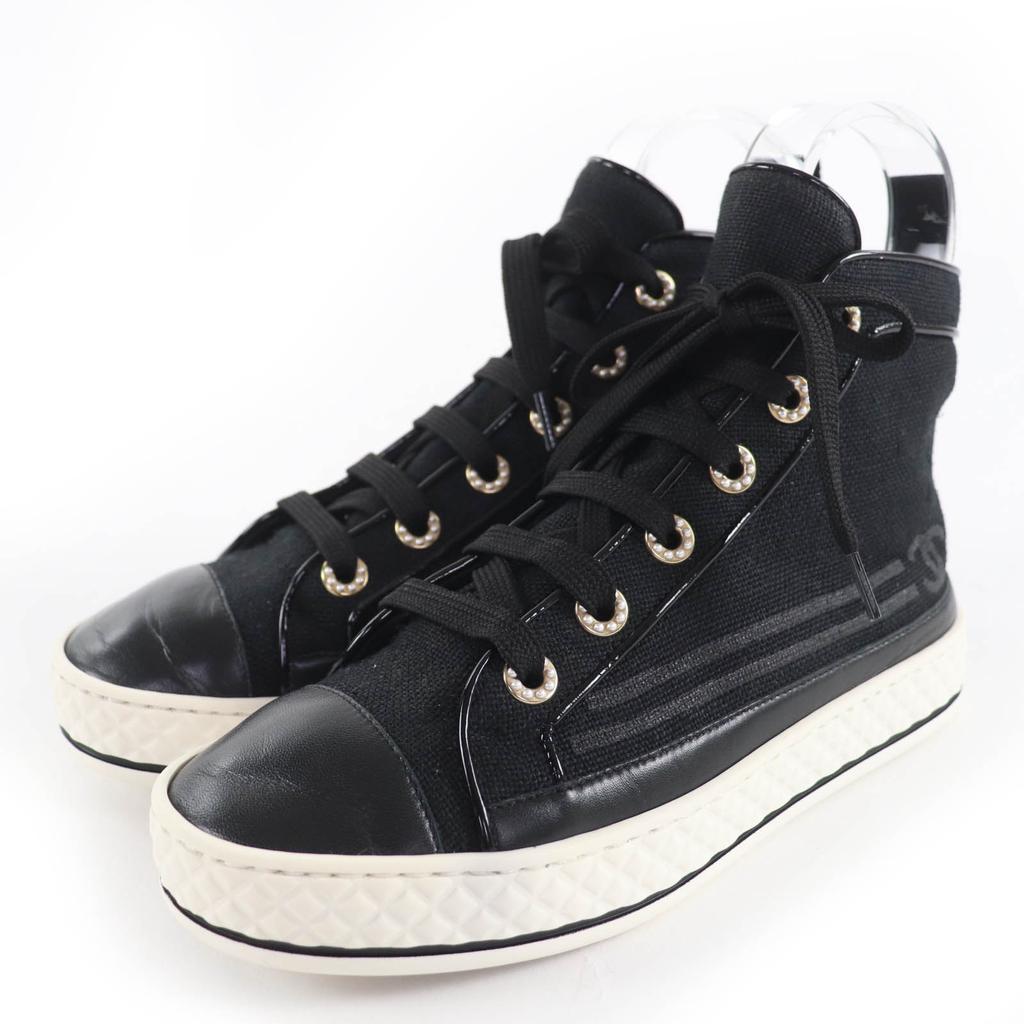 Great CHANEL sneakers COCO Mark Canvas and Leather with Faux Pearl 35 G34222 Used