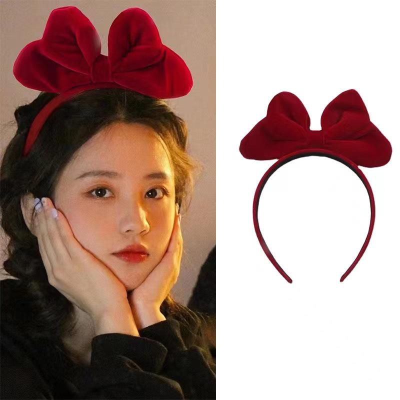 2024 Red Velvet Bow Headband - Women's New Year & Christmas Accessories for All Ages
