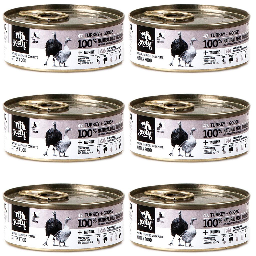 Mokra karma dla kota 3COTY Indyk z gęsią Dla kociąt - 6x80g