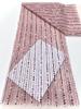 Luxury 2025 High Quality Pink African French Beaded Lace Fabric Sewing Sequins Embroidery Nigerian Lace Fabric For Women Wedding