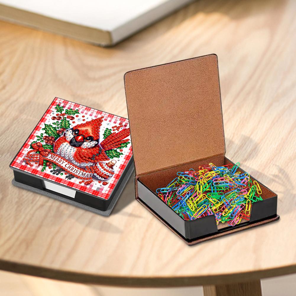 5D DIY Leather Gem Art Sticky Note Holder with 160 Sheets Paper Self Adhesive Crystal Note Box Mosaic Kit for Desktop Decoration