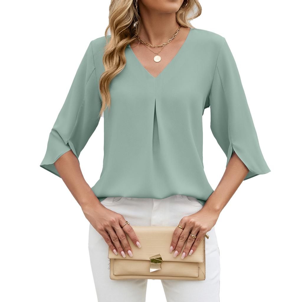 Damska casualowa moda Retro jednokolorowy top z rękawem trzy czwarte wiosna/jesień