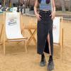 Spódnica jeansowa z surowym wykończeniem Prosta Średniej długości Rozcięcie Nieregularna Wysoki stan Casualowa Trapezowa Dopasowana na biodrach Spódnica do połowy ciała Damska Moda Jeansowy Bustier Spódnica